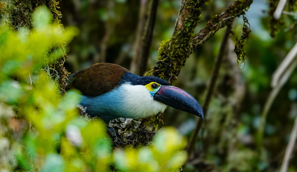 Begin the birdwatching experience along the trails of Cocora, searching for colorful species including toucans, tanagers, and other Andean forest birds.